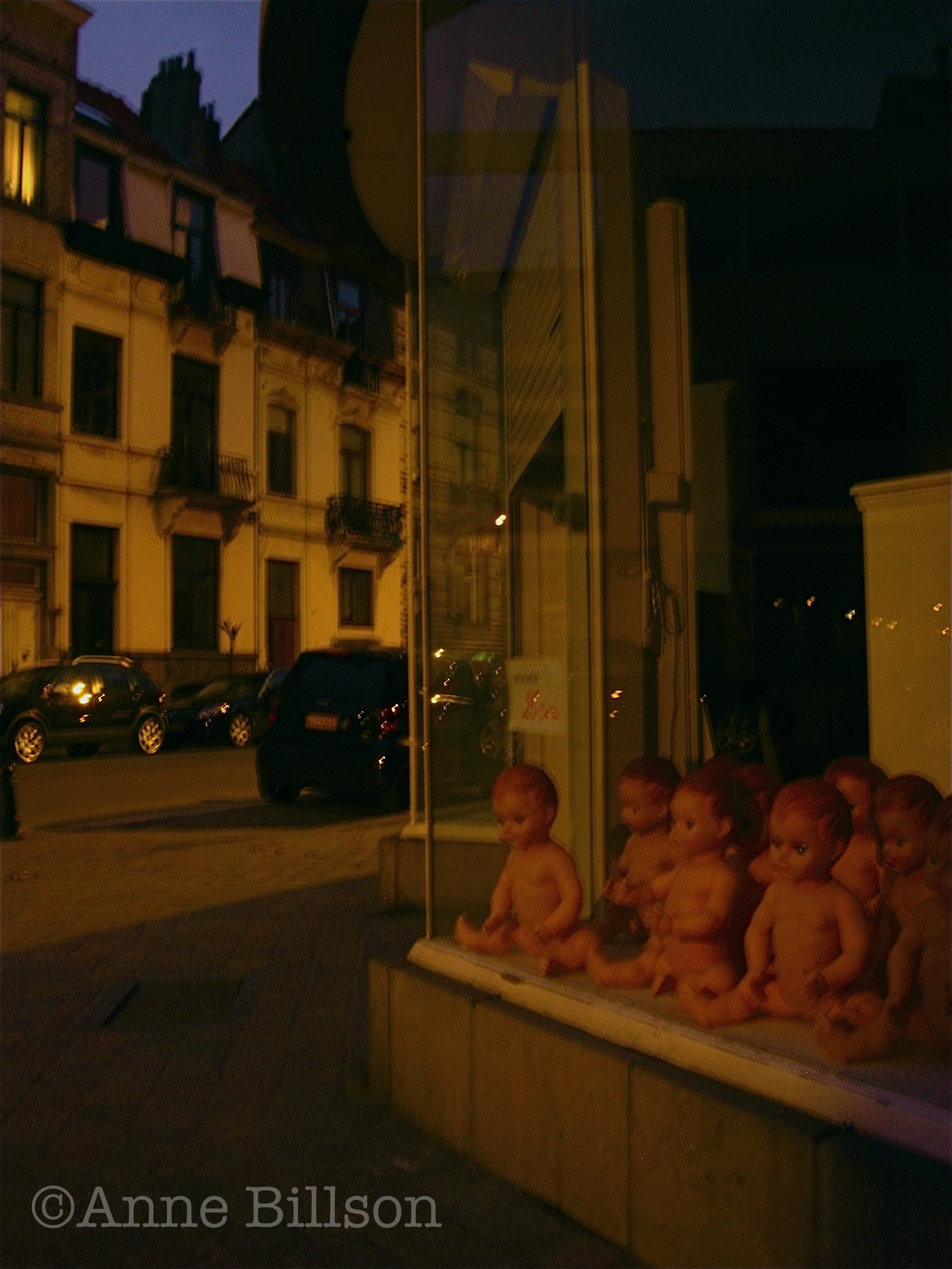 Poppen in de schemering: Washingtonstraat, Ixelles.