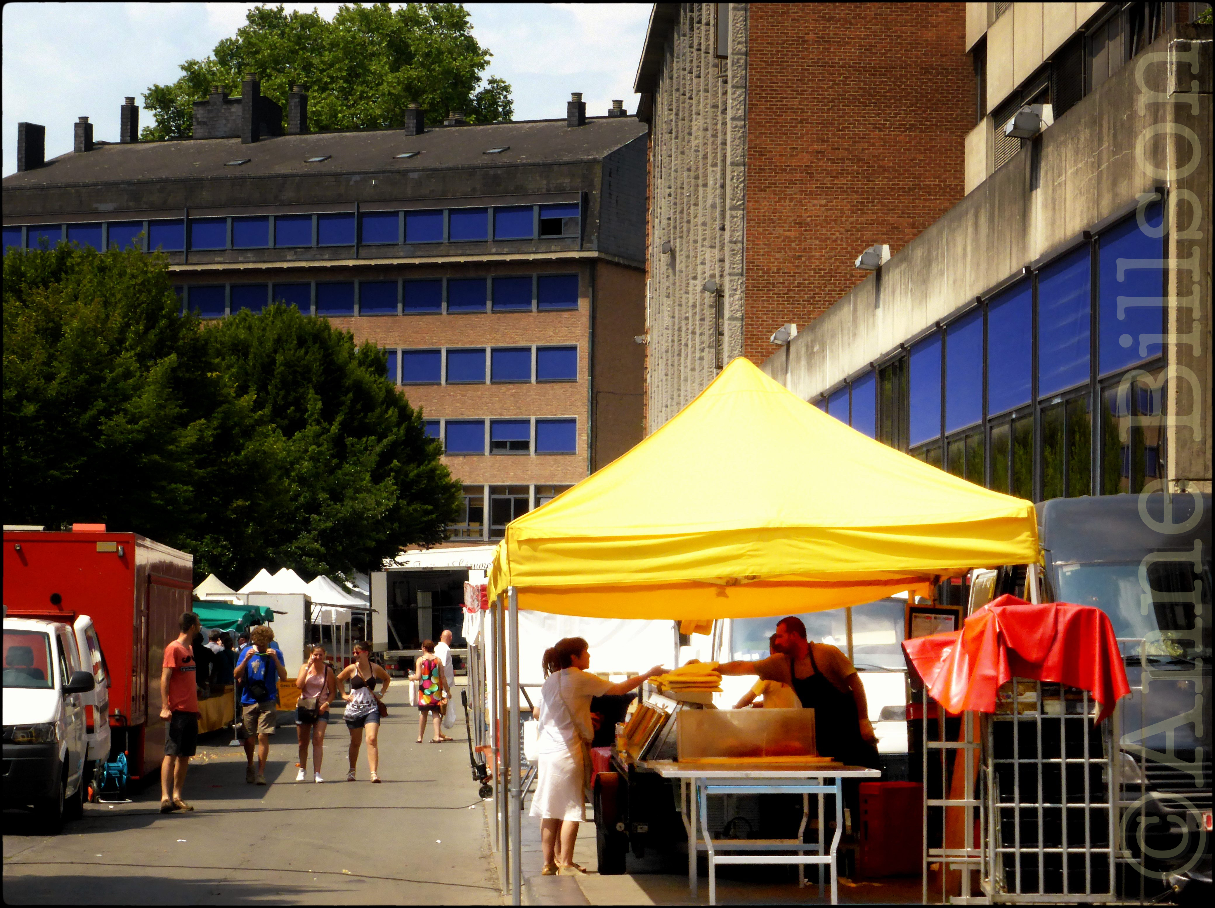 Geel tentje: Place du Palais du Justice, Namen.