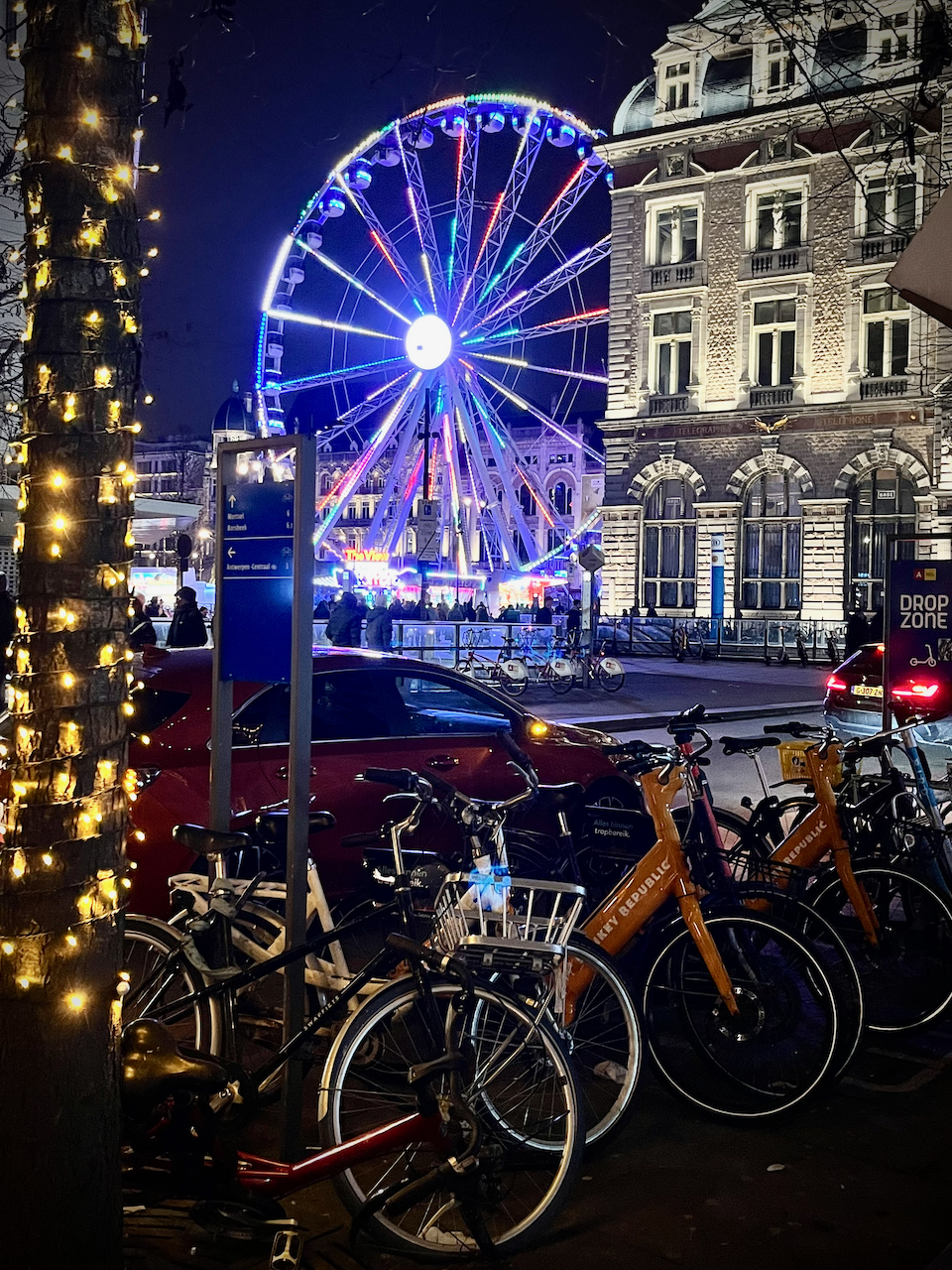 The main shopping street is Meir; it’s pedestrianised, but watch out for bicycles and scooters, because I guarantee they will not watch out for you. There’s an Inno department store – a Belgian fixture, quite possibly one of the most boring department store chains ever. (Used to be known as L’innovation; in 1967 a devastating fire at their flagship store in Brussels burned down, killing 251 people. Right-wing conspiracy theorists have been trying to pin the blame on anti-Vietnam war protesters ever since, though the truth was more prosaic: no proper exit signs or escape routes, no sprinklers, a chimney effect generated by the building’s gallery design, surrounding streets clogged with parked cars etc. Belgian fire regulations were rewritten afterwards.)