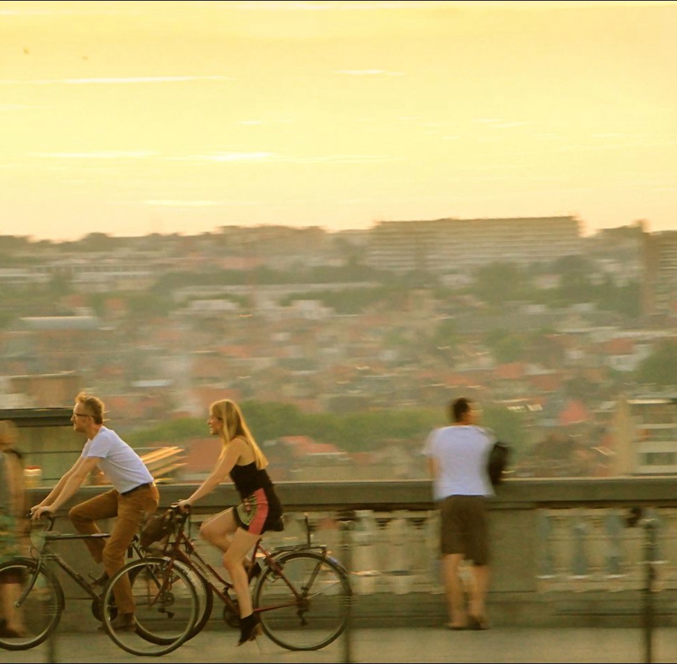 Fietsers bij zonsondergang